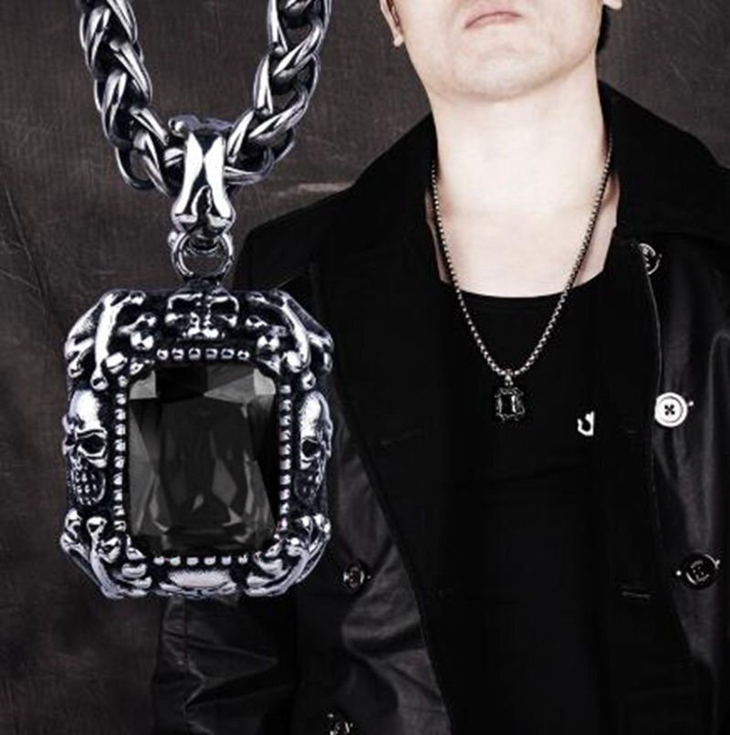 - ゴシック スカル ペンダント ネックレス★60cm★ブラック★ポップコーンチェーン★パンク ロック ヒップホップ★カニカン金具