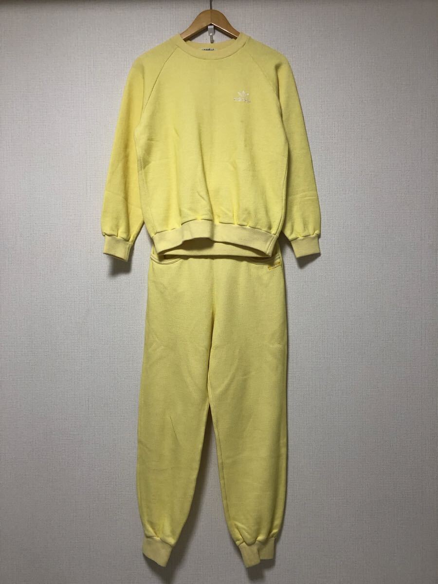 > (k) adidas アディダス スウェット トレーナー パンツ セットアップ デサント 西ドイツ 上S 下M イエロー 黄 長袖