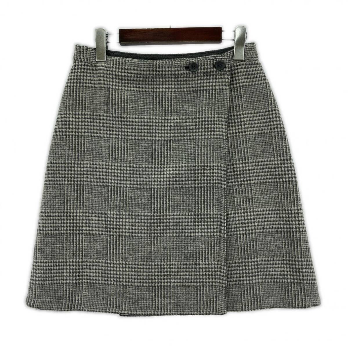 > NATURAL BEAUTY BASIC ナチュラルビューティーベーシック グレンチェック ウール混 ひざ上 スカート sizeM/グレー系