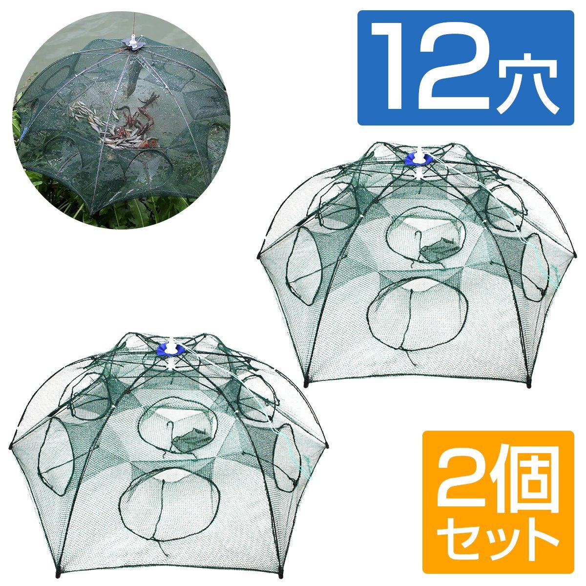 - (L) 2個セット 12穴 仕掛け網 タコ ウナギ アナゴ エビ カニ 狙い 捕獲網 六ツ手網 角網 収納 折り畳み式 穴子 魚網 漁具