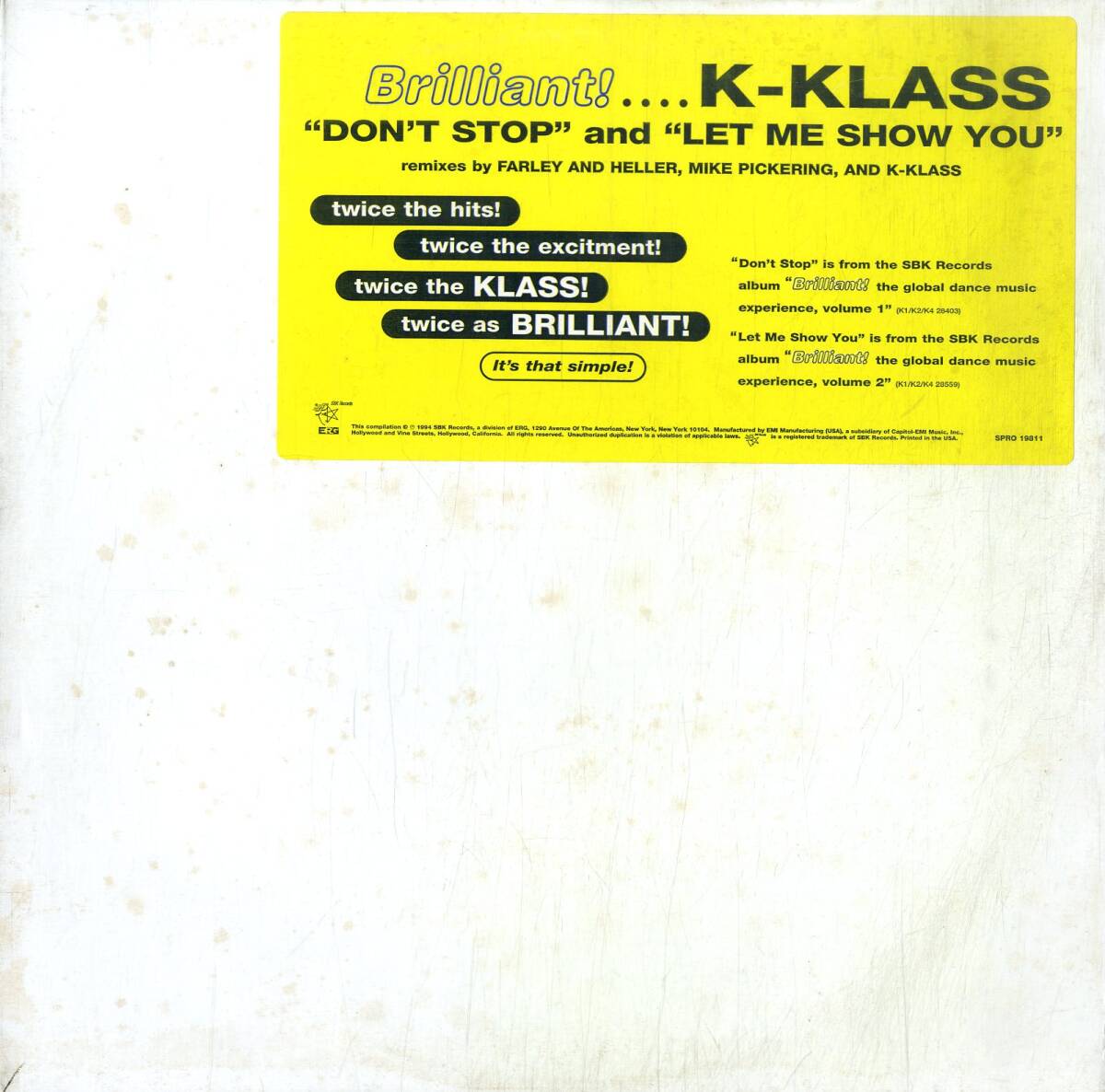 A00596674/12インチ/ケイクラス (K-KLASS)「Dont Stop / Let Me Show You (1994年・SPRO-19811・宣伝盤・ハウス・HOUSE)」