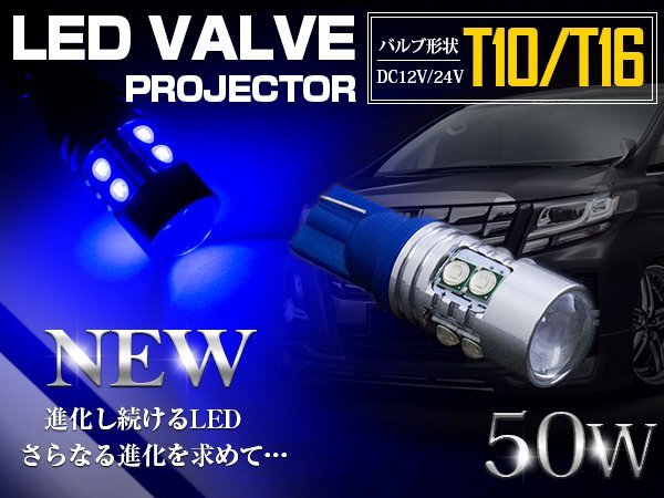 - 『1球』 台湾製 プロジェクター LED T10/T16 ウェッジ球 50W 12V/24V 青 ブルー ウェッジ球 LED球 ポジション球 無極性 バックランプ