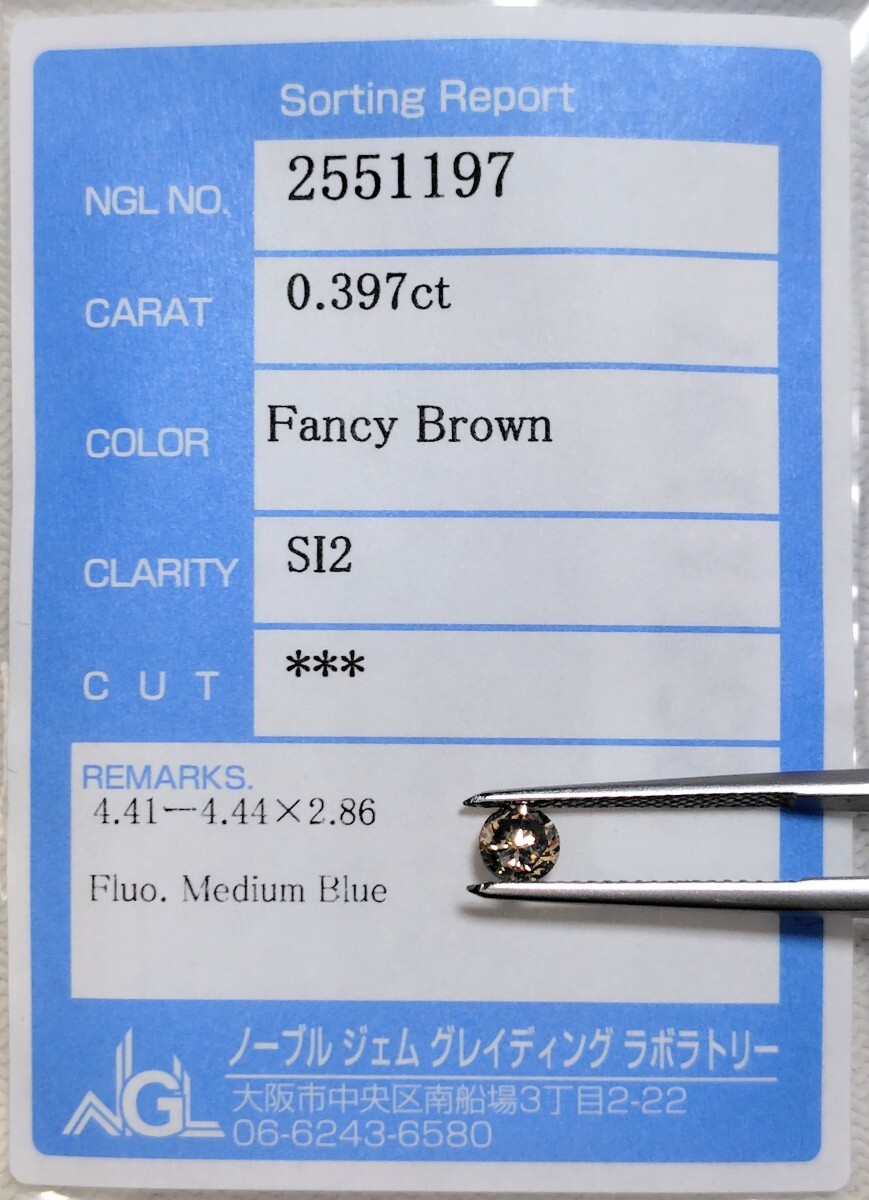 - 【12/11(木)】天然ブラウンダイヤモンド ルース 0.397ct FBr SI2 鑑別 NGL│B0942yb【Brown】 ダイヤ diamond