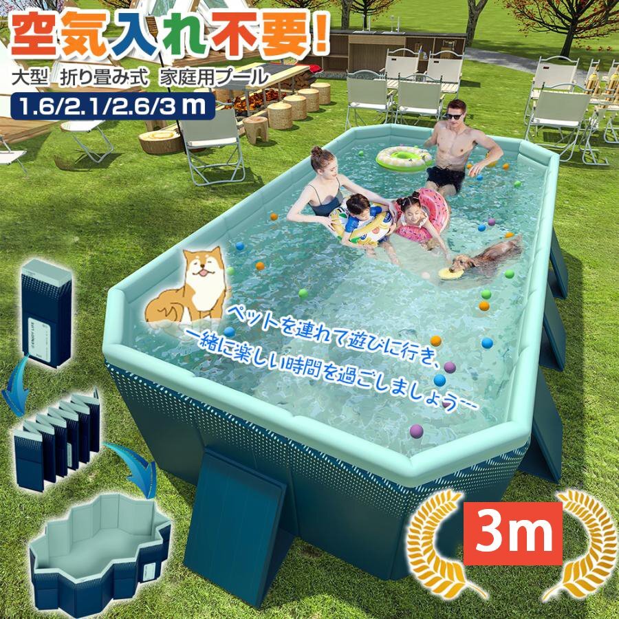 - 大型プール 3m 空気入れ不要 支え板付き 折り畳み ビニール 3m 水遊び 大型 キッズ 組み立て プール 空気入れ不要 479