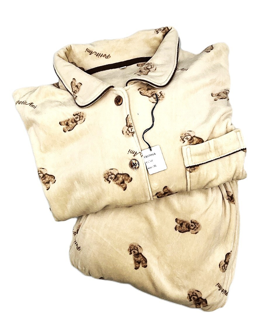 - CR17094 ZK⑦【特価】新品 大きい パジャマ 5L 1セット ライトベージュ ストレッチ ゆったり 楽ちん 伸縮性 プードル柄 レディース