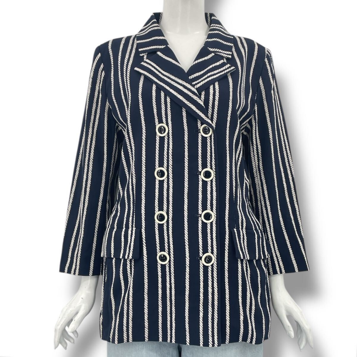 > 美品 Yves Saint Laurent イヴ・サンローラン ジャケット ストライプ ネイビー AH3-4 1121-7