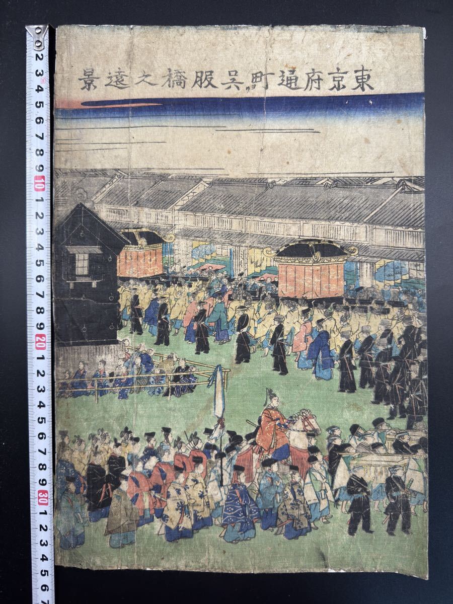 - 江戸期/真作 歌川芳藤「東京府通町より呉服橋之遠景」本物浮世絵木版画 名所絵 錦絵 大判 裏打ち