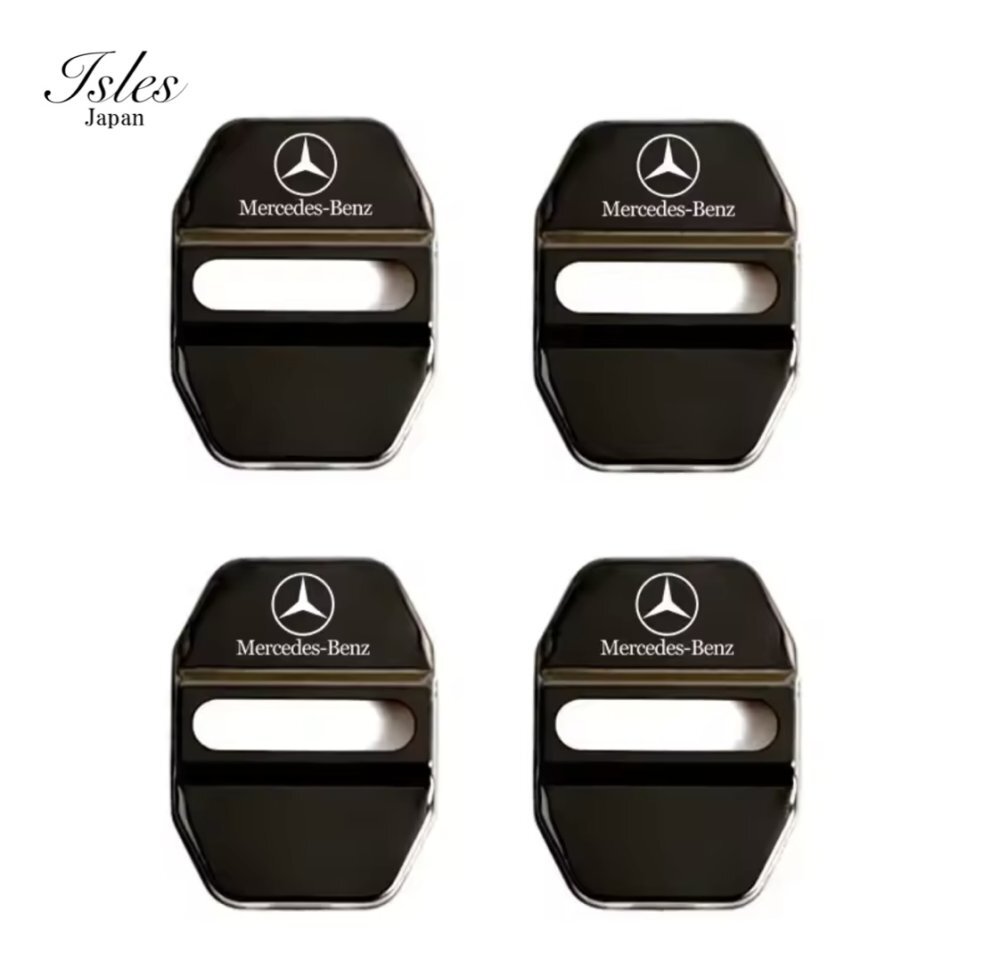 - 【新着特価!】メルセデスベンツ 専用ドアロックカバー ストライカーカバー 鏡面ステンレス製 簡単取付 4PCS一台分 ブラック