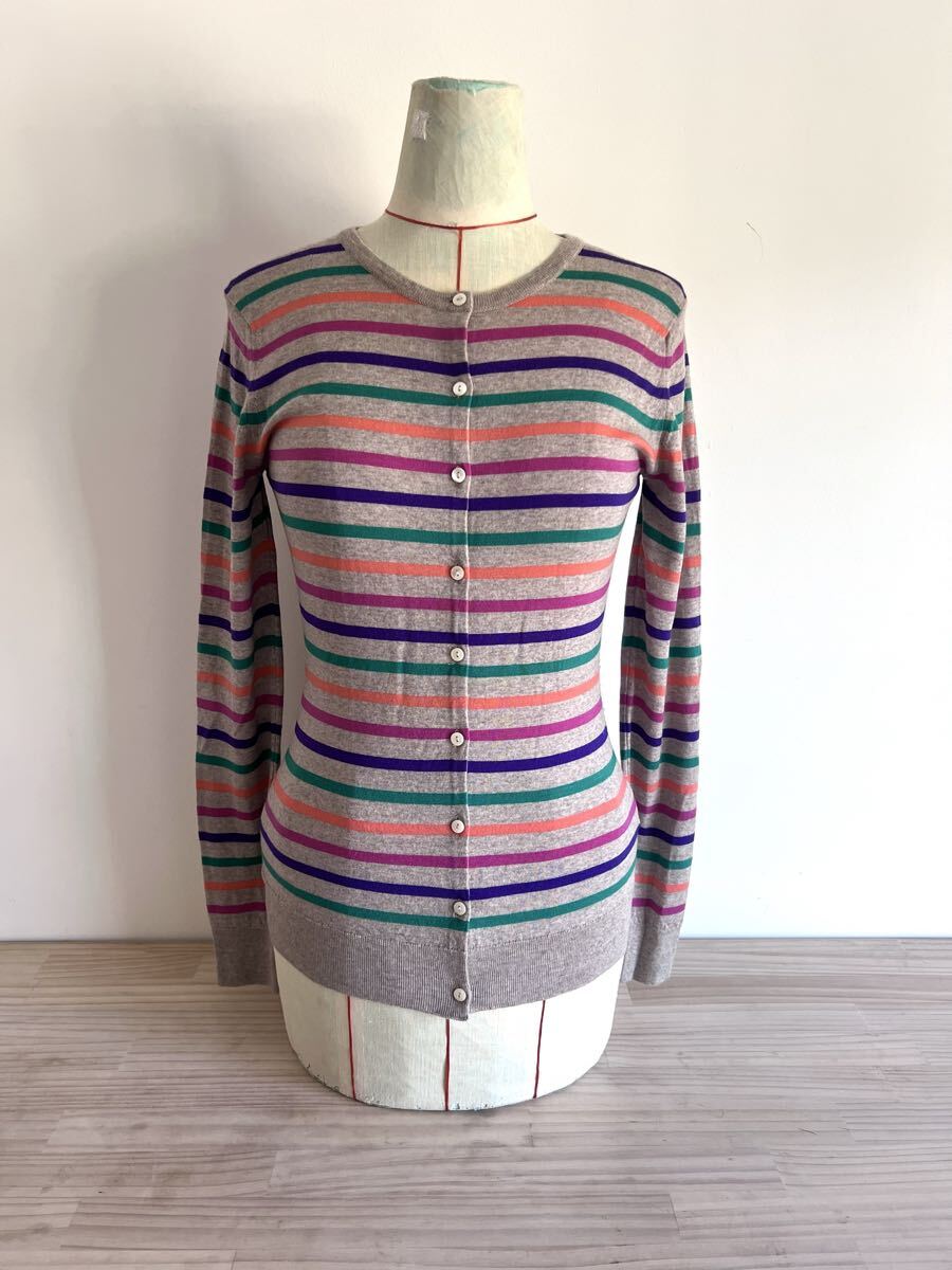 - ジョンスメドレー/JOHN SMEDLEY/カーディガン/トップス/ニット/S/長袖/セーター/メリノウール/イギリス製/グレーベージュ×マルチ/美品良品