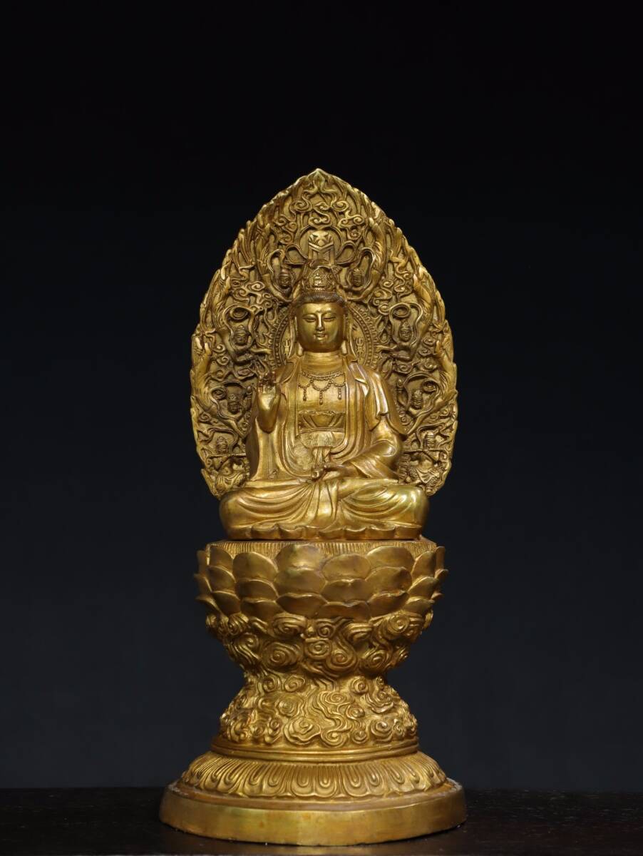 - 旧蔵 古銅彫 塗金 觀音 佛像 古擺件 古置物 中国古玩 骨董品 時代物 稀少唐物