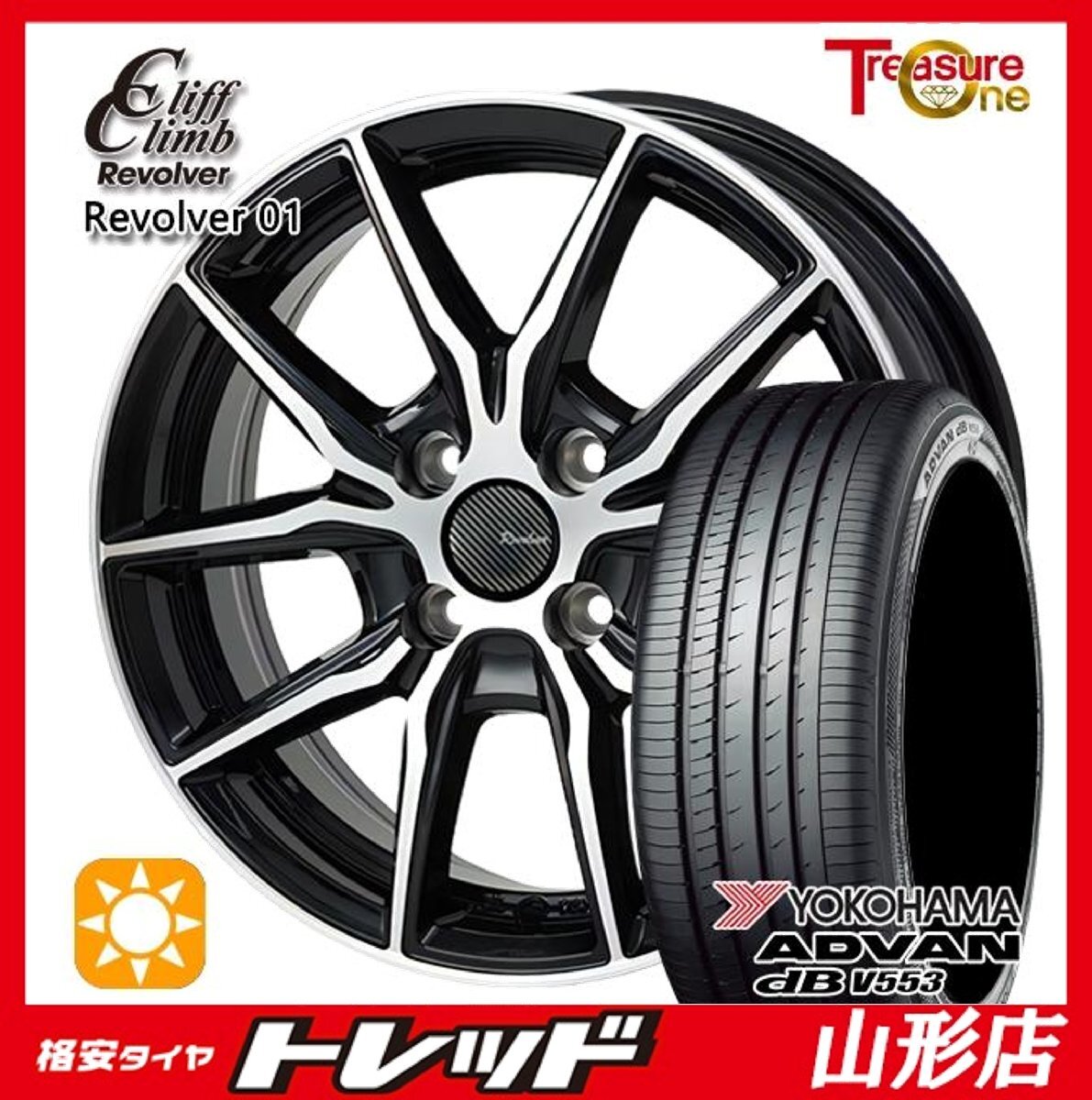 > 山形店 新品 夏タイヤホイール4本セット CliffClimbリボルバー01 15インチ 4.5j 4H100 +45 BP ヨコハマ デシベルV553 165/55R15 2025年製