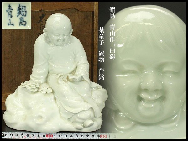 > 【銀閣】鍋島 青山作 白磁 茶童子 置物 在銘 旧家蔵出 送料無料(N824)