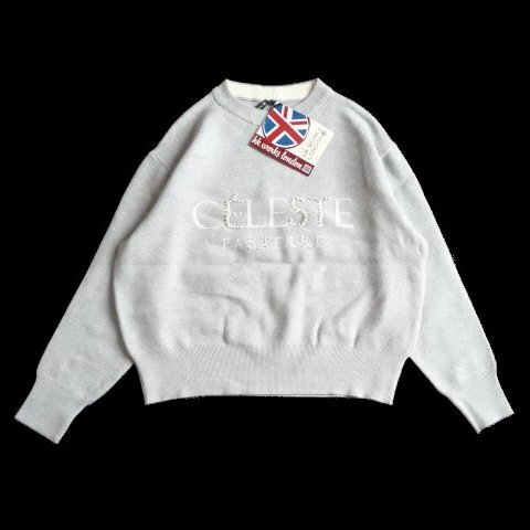 > 新品 HK WORKS LONDON ニット セーター パール 装飾 ロゴ クルーネック M レディース 丸首