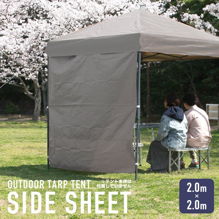 - タープテント用 サイドシート 2m×2m 着脱式 ワンタッチ サンシェード UVカット 撥水 日除け アウトドア キャンプ BBQ グレー mermont