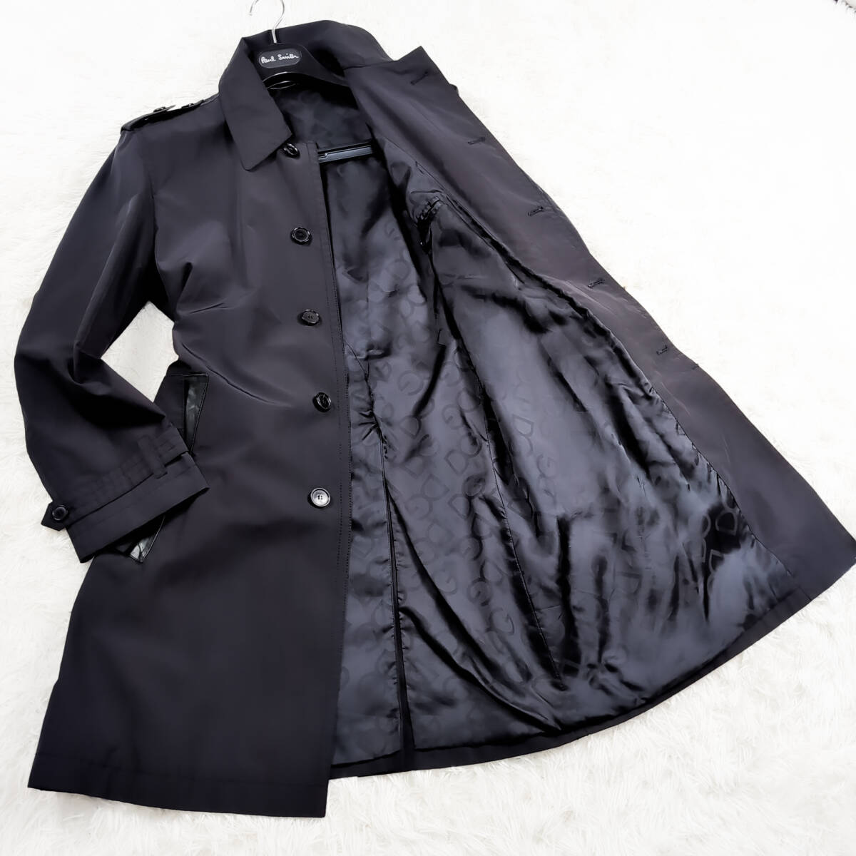 - 定価70万!未使用級DOLCE&GABBANA最高級ペルシャラムレザー ナポレオンコートDGロゴ柄L~Mトレンチ黒ブラック46ドルガバドルチェ&ガッバーナ