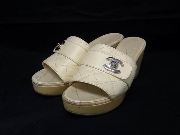 > 1円 CHANEL シャネル ココマーク マトラッセ レザー ヒール サンダル 表記サイズ 36 (日本サイズ 約23cm) 靴 シューズ ベージュ系 FS7455