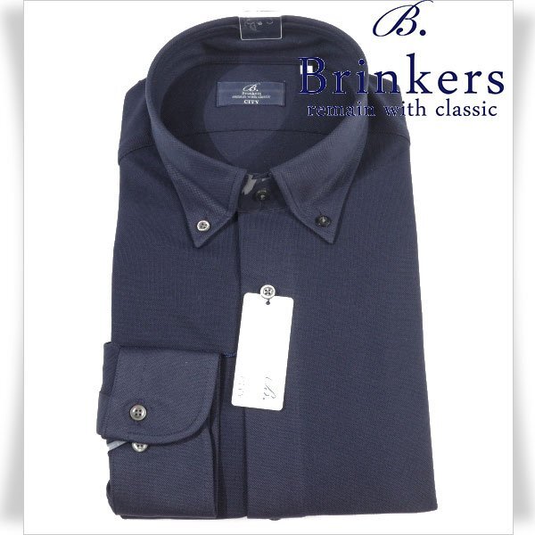 > 新品1円~★Brinkers ブリンカーズ メンズ 長袖 CITY ボタンダウン ストレッチ シャツ L 41-84 ネイビ― 織柄 ビジネス カジュアル◆9666◆