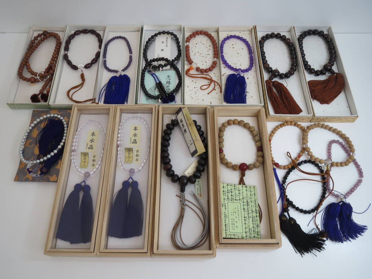 - (c-16) 念珠 / 数珠 縞黒檀・本紫檀・本水晶 など 17点セット