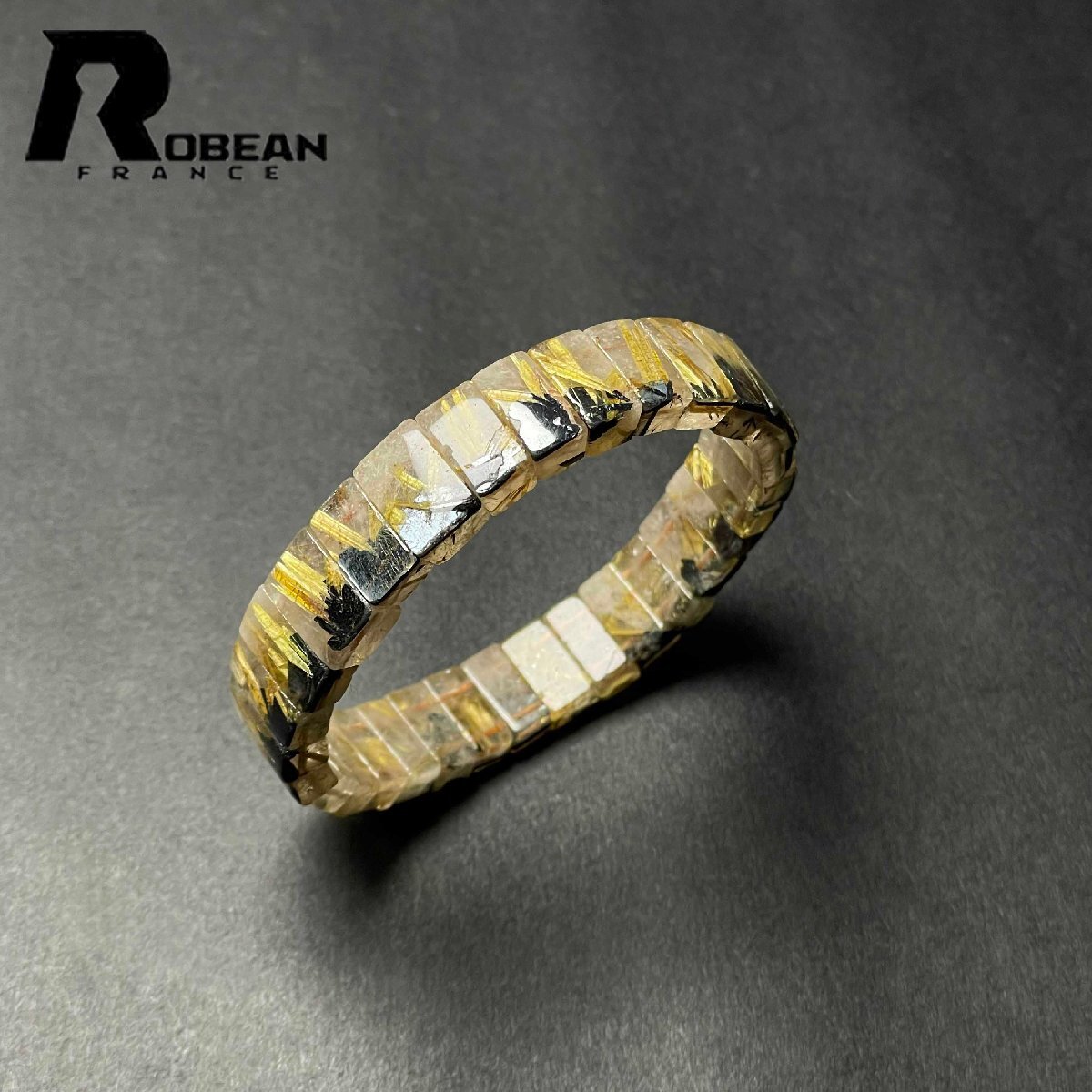 - 上品EU製 定価9万円★ROBEAN・太陽花タイチンルチルバングル★黄金針水晶 ゴールド ブレスレット パワーストーン 11.8*7.4*5mm M1110991