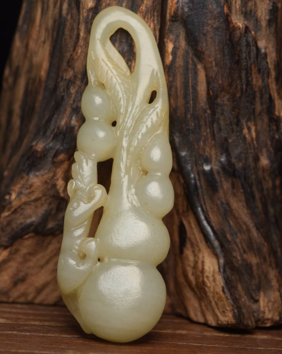 - 旧蔵 和田玉彫 葫芦 根付 中国古玩 骨董品 時代物 稀少唐物