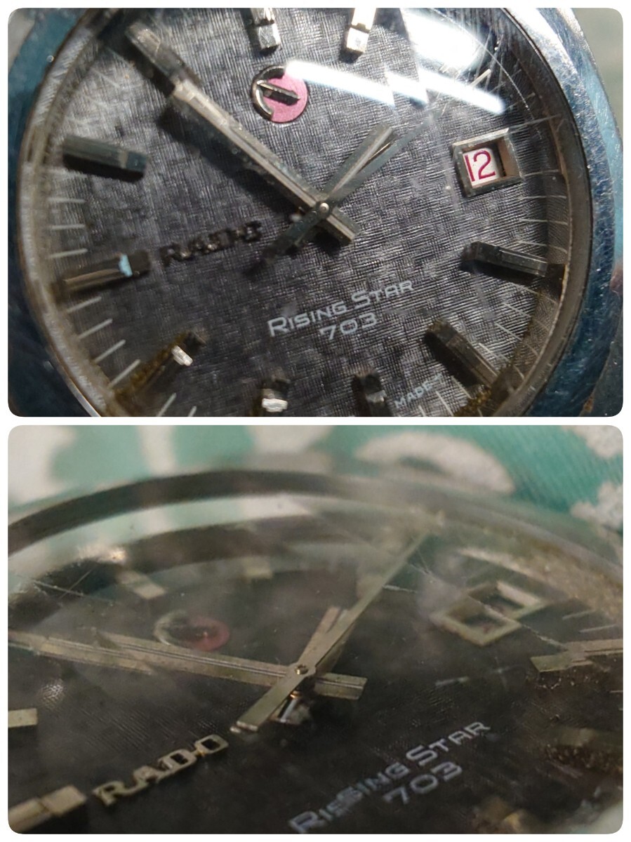- ● 70年代 RADO Rising Star 703 ラドー ライジングスター REF.11894/1 ダークグレー文字盤 カットガラス 純正ベルト 自巻き ジャンク品 ①