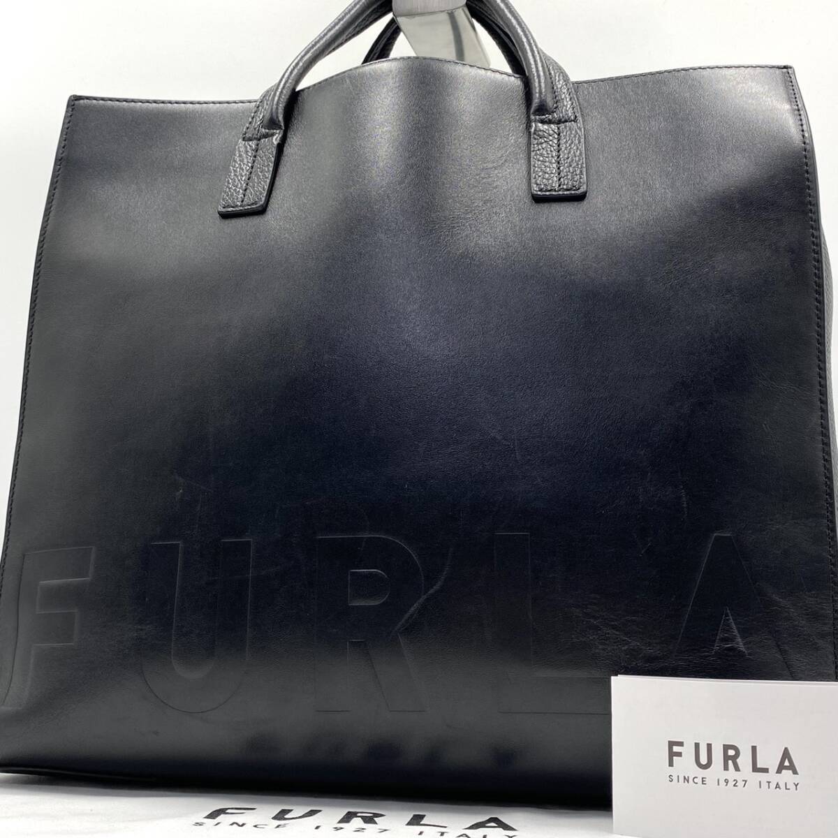 - 1円【入手困難品】フルラ FURLA メンズビジネス トートバッグ ブリーフケース レザー 本革 A4 ロゴ型押し ハンド ブラック 黒 大容量