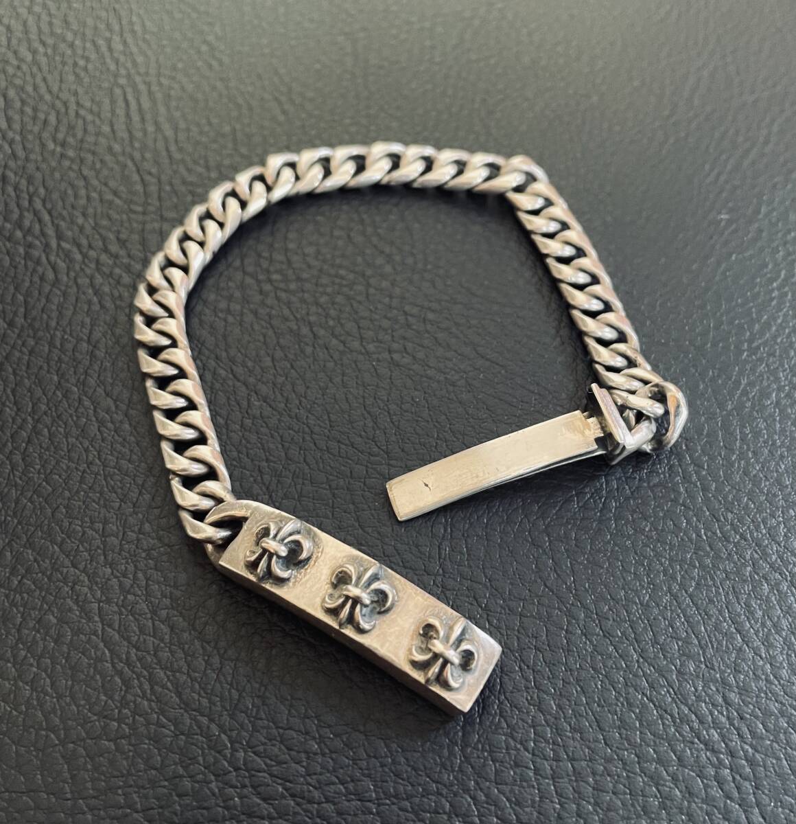 - ヴィンテージ ダガー 百合モチーフ クロス シルバー925 スターリング 喜平 チェーン ID ブレスレット