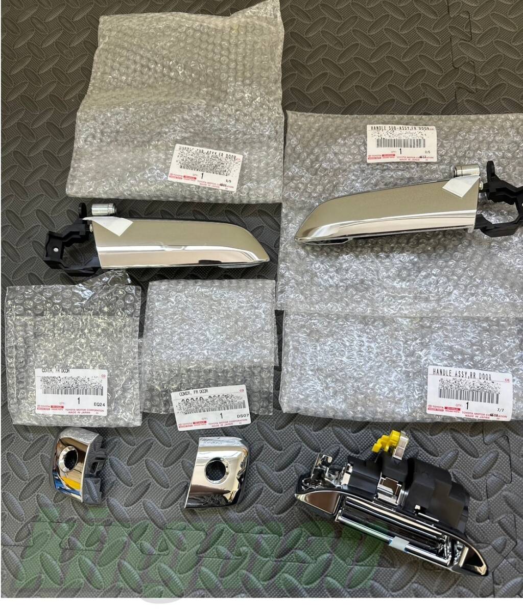 > ●新品 未使用●トヨタ純正部品 TOYOTA 200系ハイエース メッキドアハンドル 1台分 4ドア車用 アウターハンドル 助手席カギ穴あり