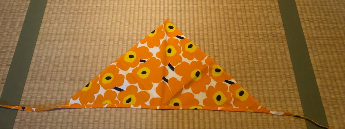 > 定型送込♪マリメッコ♪marimekko♪レア 終了色 オレンジ ミニウニッコ mini unikko 柄 三角巾 キッチン用品 給食