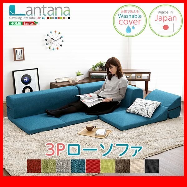 - ソファ★カバーリングコーナーローソファ フロアソファ 3人掛け/布地 洗濯可 レイアウト変更可 日本製/黒 茶 緑 赤 青 ベージュ グレー/zz