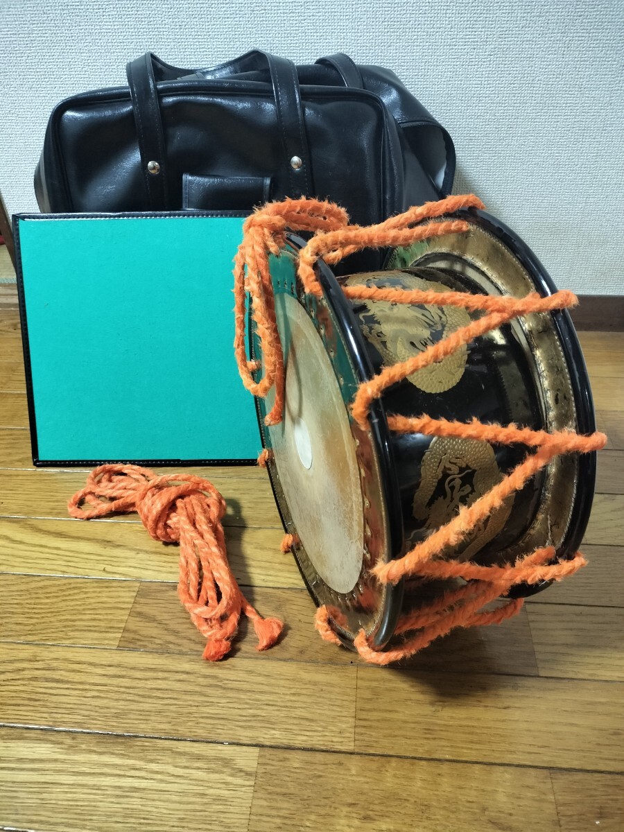 - 締太鼓 和楽器 能楽 長唄 民謡 鉋目 龍蒔絵 ケース付き