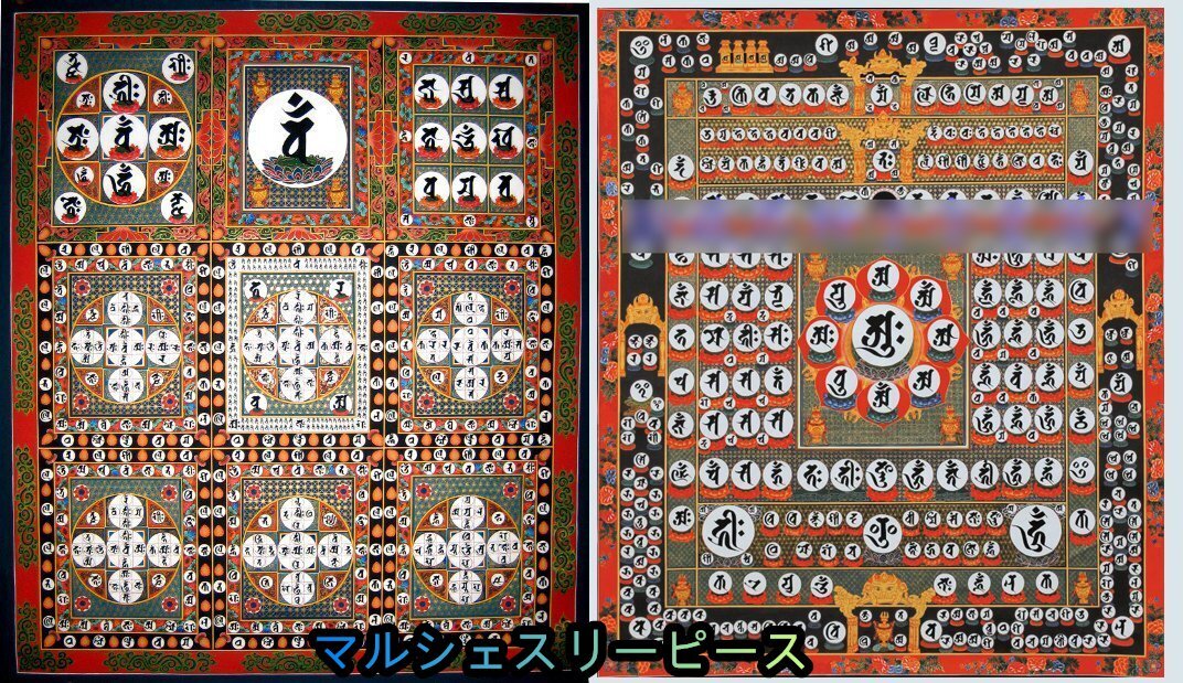 > 曼荼羅金剛界曼荼羅 胎蔵界曼荼羅 種子字曼荼羅画 伝真言院両界曼荼羅 唐密東密密教 観法 金剛界胎蔵界 2点セットY38140