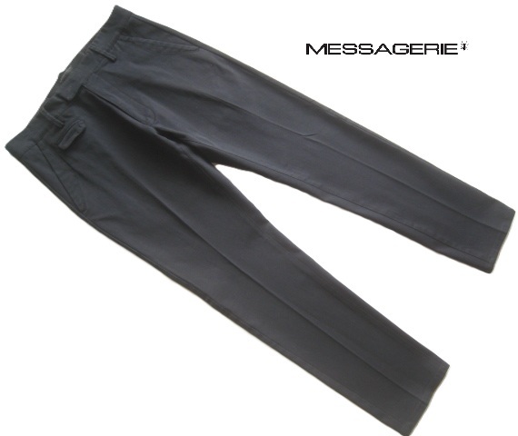 > 美品3.6万!!メッサジェリエ MESSAGERIE*イタリア製 金属ロゴプレート付き ストレッチコットンスラックス・パンツ 44 実寸S 濃紺 ネイビー