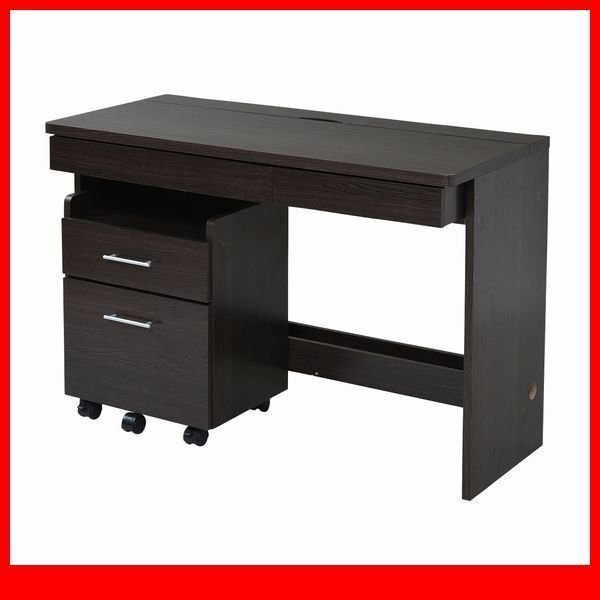 - 机★シンプルデスク 2点セット/パソコンデスク キャスター付きワゴン/配線 収納/SOHO ワークデスク/ダークブラウン/sgta-0125/即決/即決/a1
