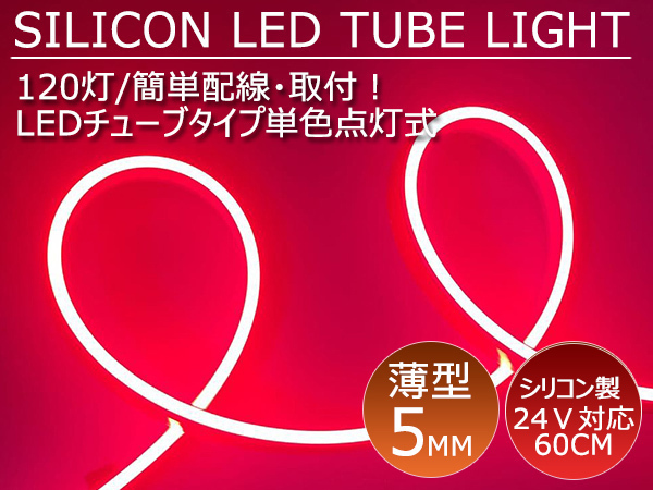 - 送料無料 薄型 高密度側面発光 LEDシリコンチューブテープ 24V車用60㎝120SMD 防水仕様 驚きの柔軟性 レッド 2本セット アイライン