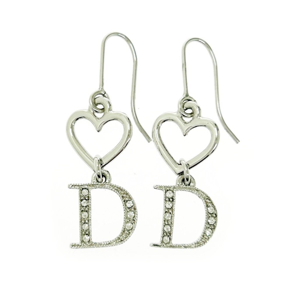 - 【1円スタート】Christian Dior クリスチャンディオール メタル ラインストーン Dロゴ ハート シルバー ピアス 513539