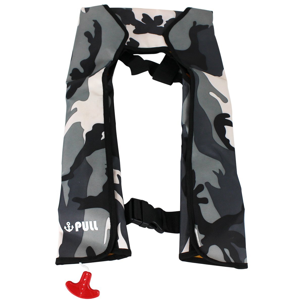 - 大人気!オリジナルデザイン! ライフジャケット 自動膨張式 肩掛け ベストタイプ 迷彩ホワイト ※男女兼用! フリーサイズ 釣り 船 ボート