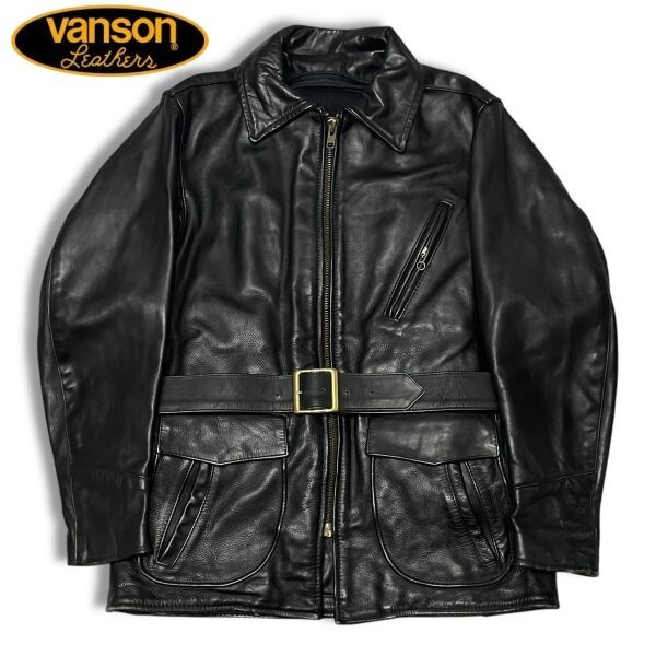 - 46 廃盤モデル 正規品 VANSON バンソン Type J カーコート J タイプ レザー ジャケット 2way coat インナー脱着可能 40 ブラック メンズ