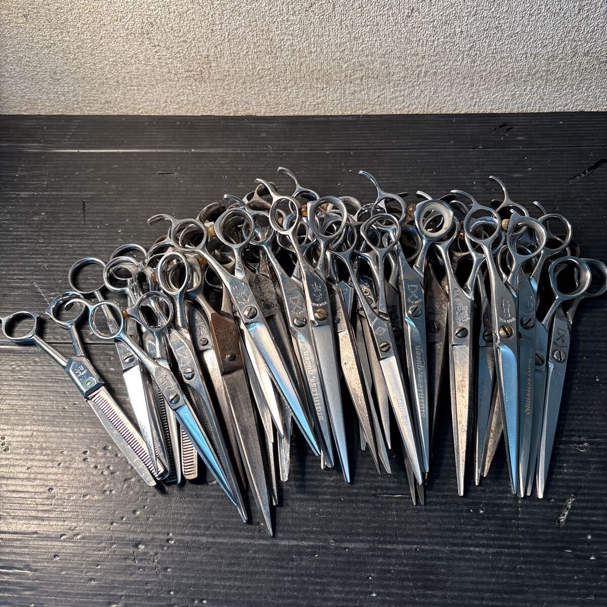 - ☆理容 美容 鋏 はさみ シザー セニング 大量セット Nic 花蜻蛉 海老 大洋 玉鋼 賢司 にわとり 他 (15)