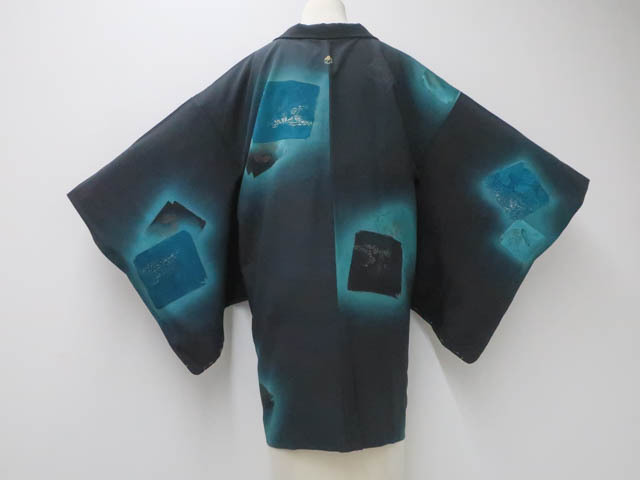 > 《古美術京松》【着物】アンティーク 羽織 一つ紋 やぶれ色紙に笹文 羽織紐別売り 身丈約82cm 裄丈約63.5cm kyo7z05-359