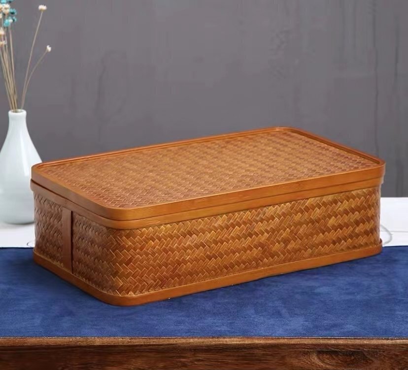 - 注目新作★編みの茶器の★収納箱竹制漆★茶箱★カンフー茶道の貯蔵籠の弁当箱の復古手作りの茶箱