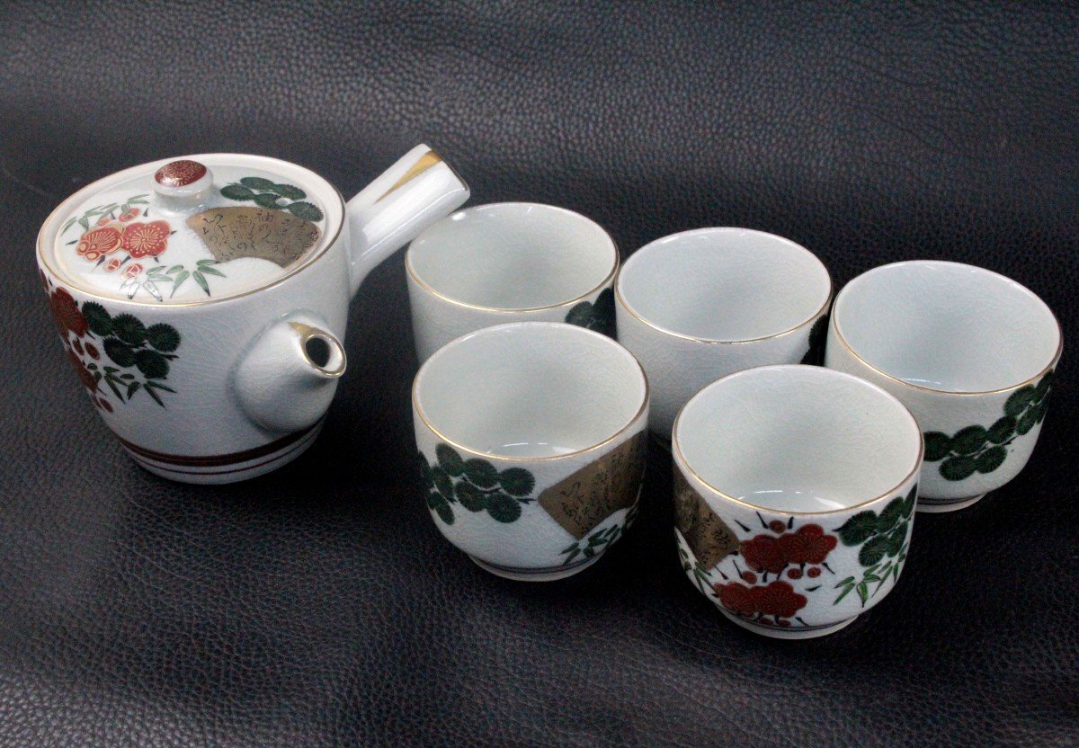 - 九谷焼 秀山造 九谷秀山 番茶器 急須 湯呑 梅 金彩 骨董品 美術品 レトロ アンティーク コレクター