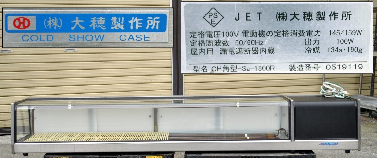 > [動作OK] 大穂製作所 ネタケース OH角型-Sa-1800R 幅1800mm 冷蔵ショーケース 寿司 精肉 AC100V 50/60Hz [直接引取限定 福島県須賀川市]