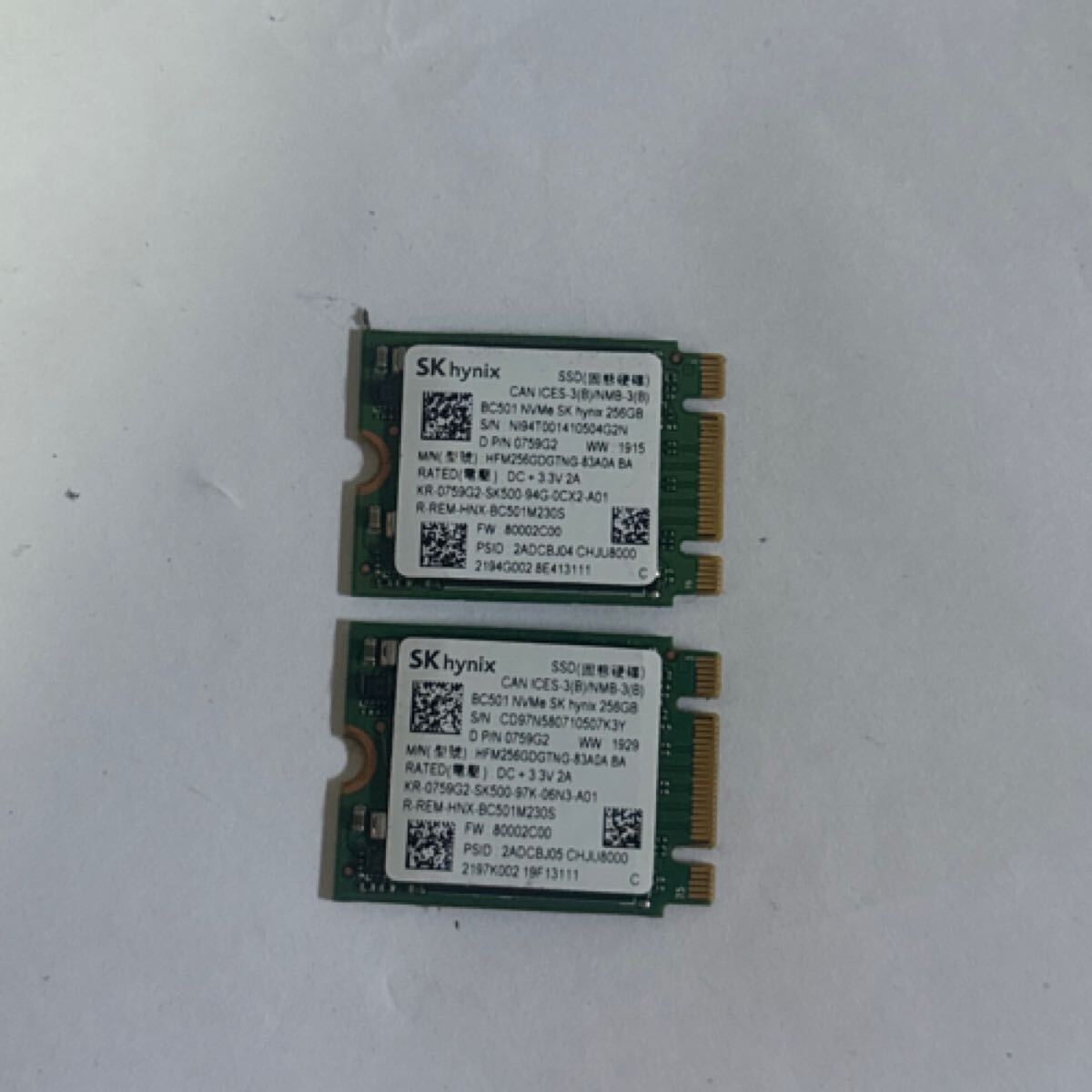 - (073)SK Hynix SSD 256GB M.2 2230 30mm NVMe PCIe HFM256GDGTNG-83A0A 2枚セット
