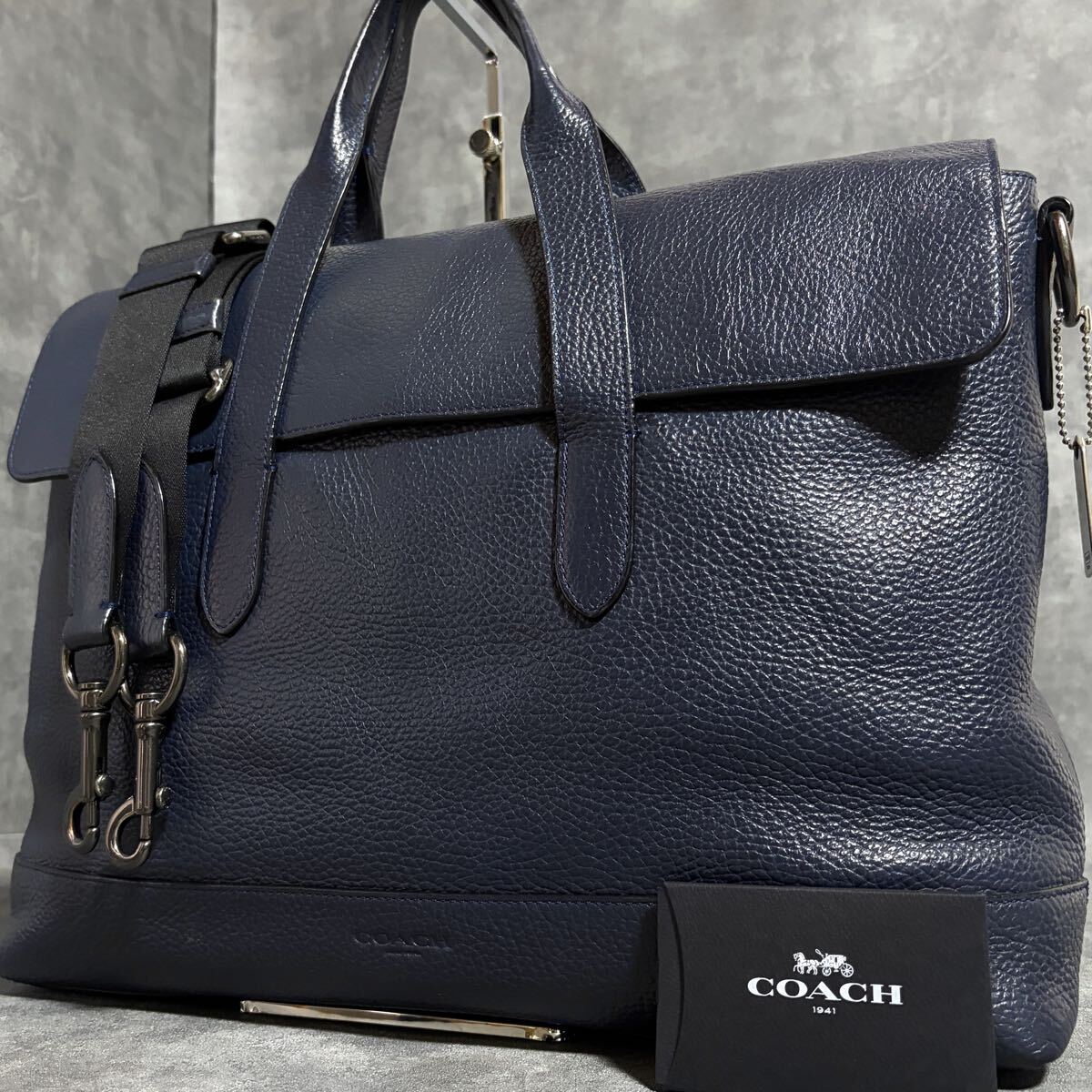- [極美品] COACH コーチ ブリーフケース トートバッグ ショルダー 2way レザー ネイビー系 ビジネス 通勤 メンズ