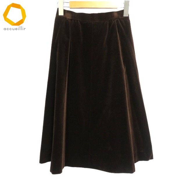> #w ジュンアシダ jun ashida フレアー スカート 9号 茶 フレア Aライン ベロア調 レディース [972614] k01