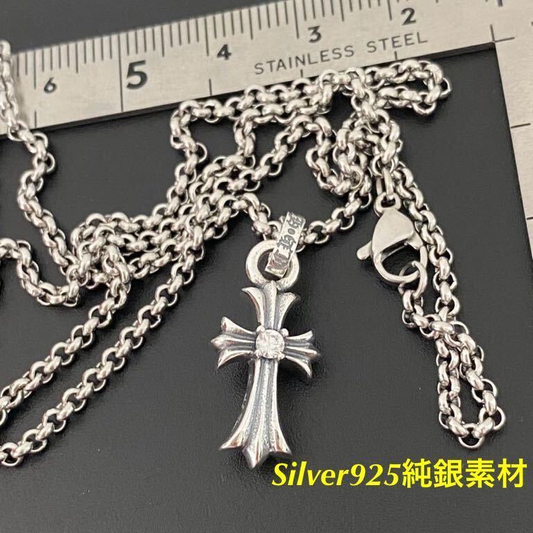 > シルバー925純銀素材 ネックレス ペンダント クロス ベビーファット トップ チェーン:50cm 新品 シルバー 刻印あり 男女兼用 送料無料