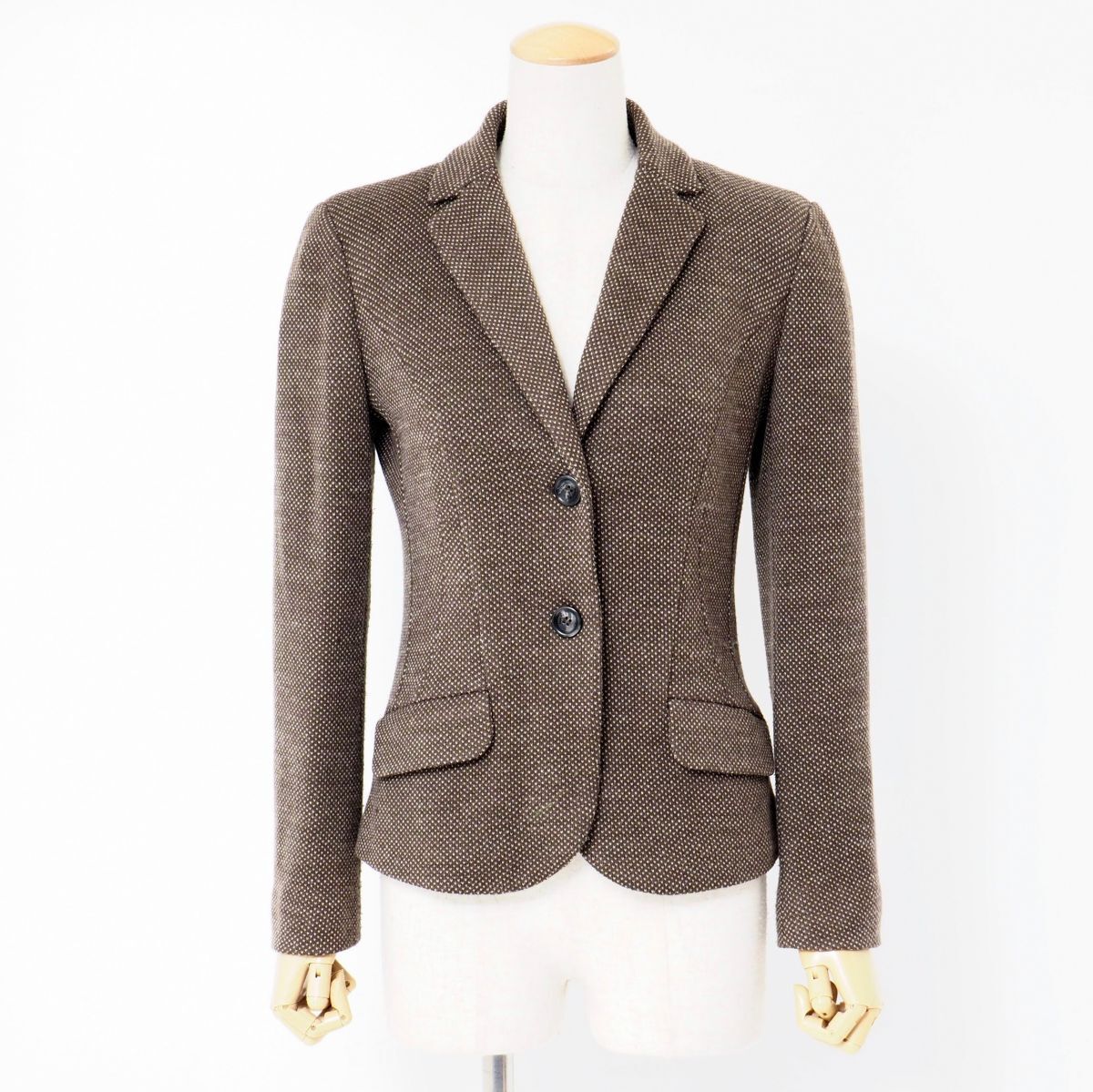 - TJ6807☆ウィークエンドマックスマーラ WEEKEND Max Mara ニットジャケット テーラードジャケット 総柄 ウール混 ブラウン系 Sサイズ