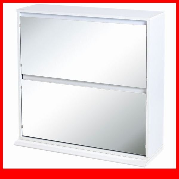 - 下駄箱★新品/薄型ミラーシューズラック/幅90cm 16足収納可能 2台連結可 お出かけ前の身だしなみチェック 鏡付きフラップ扉/ホワイト/a3