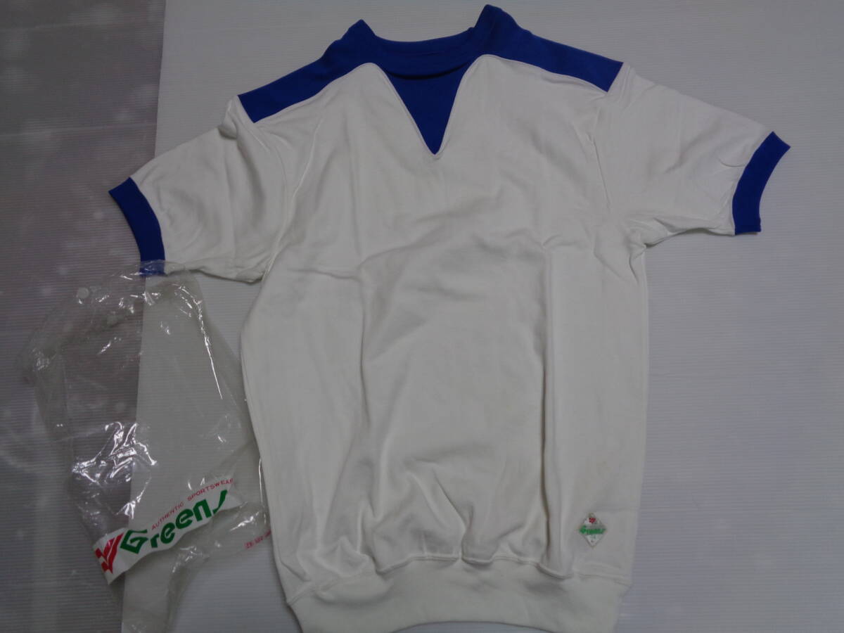 > L 白×花紺 校章無し greens グリンズ 半袖 Tシャツ 体操着 体操服 昭和レトロ 未使用カビシミ!